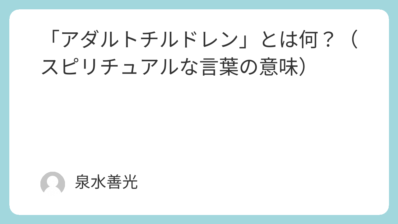なんだか「アダルトチルドレン」という言葉を聞くと、